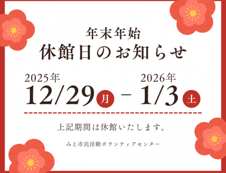 年末年始休館のお知らせ