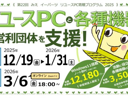 【お知らせ】みえイーパーツリユースPC寄贈プログラム 2025 申請団体募集