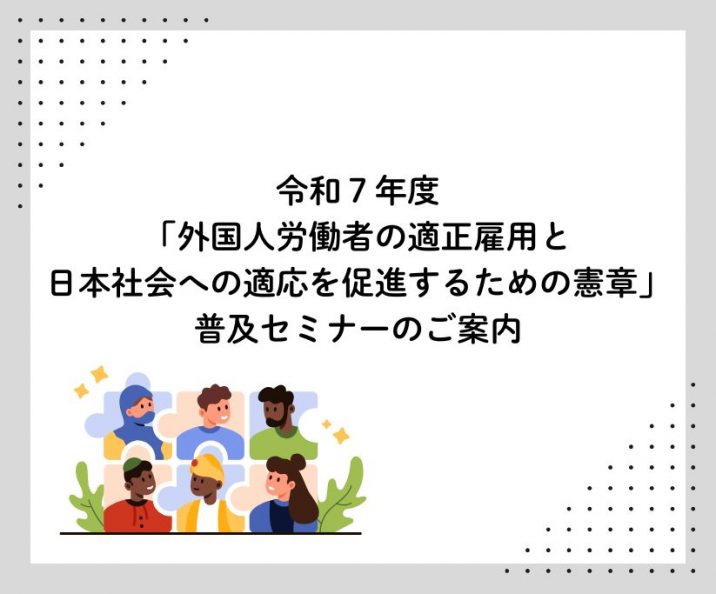 | 詳細 | 東海4県1市(三重県・岐阜県・静岡県・愛知県)では、平成20年1月に「外国人労働者の適正雇用と日本社会への適応を促進するための憲章※別紙憲章参照」を策定し、平成22年度以降、同憲章の普及のため、企業関係者や外国人の就労支援・相談活動に携わる関係者等を対象としたセミナーを開催しており、令和7年度は下記のとおり三重県で開催することとなりましたので、ご案内申し上げます。